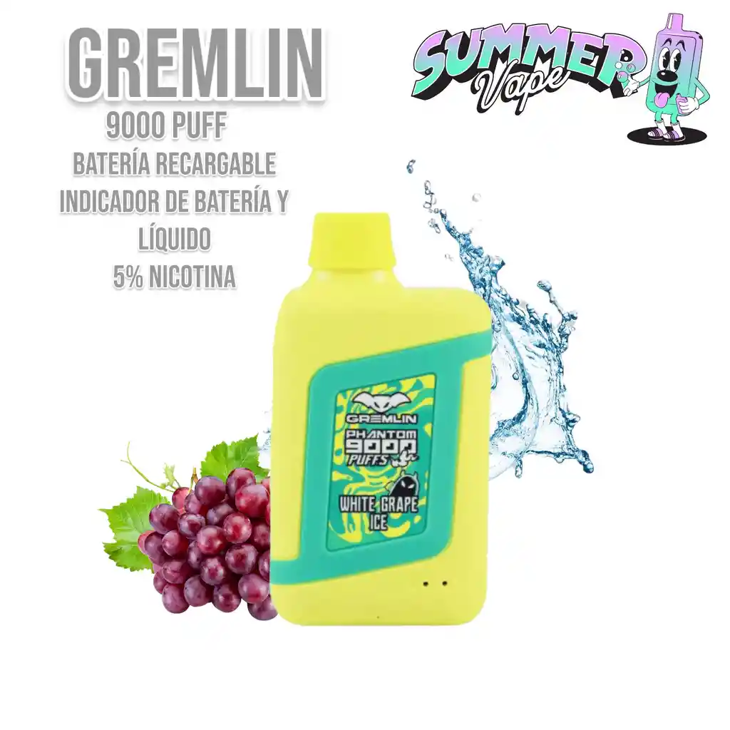 Vaporizador de bolsillo marca PHANTOM GREMLIN de 9000 Puff con Batería recargable