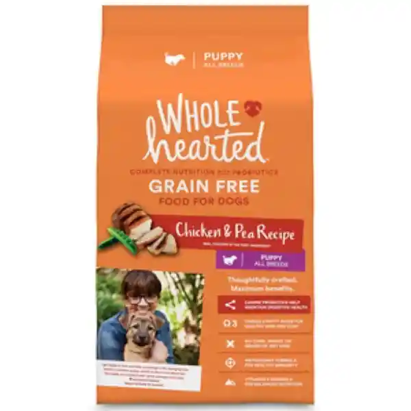 Todas Las Razas Wholehearted Libre de Granos Alimento Natural su Receta de Pollo y Chícharo Proporciona a tu Cachorro Ingredientes de Alta Calidad Que Ayudan a su Crecimiento. Contiene Dha Que Contribuye al Desarrollo Adecuado Del Cerebro de tu Cachorro Mientras Que Los Ácidos Grasos y Omega-3 Ayudan a Mantener su Piel y Pelaje Saludable y Brillante. Nutre a tu Cachorro Mientras le Das Comida Deliciosa Que le Encantará! Con Fibra Sin Maíz ni Trigo. Fórmula Antioxidante Para Una Inmunidad Saludable (Niveles Garantizados de Vitamina e Selenio y Zinc). Dha Que Contribuye al Desarrollo Adecuado Del Cerebro. Vitaminas y Minerales Para Una Nutrición Balanceada. Proteína de Pollo Como Primer Ingrediente. Probióticos Caninos Que Ayudan a Mantener la Salud Digestiva. Ácidos Grasos y Omega-3 Para Una Piel y un Pelaje Saludables.