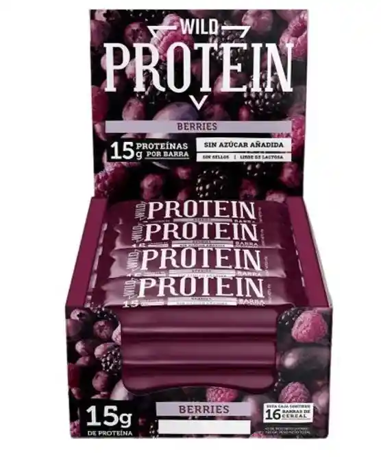 Conoce a la nueva integrante de la familia Wild Protein, nuestra nueva barrita sabor Berries hecha con pasta de almendras naturales y concentrados de fruta naturales y liofilizados. Como si fuera poco, contiene 15 g de proteína por porción, es libre de sellos y no tiene azúcar añadida ¡Qué estás esperando para probarla! Su sabor berries es más suave ya que viene de un concentrado natural. Barrita de proteínas 15 grs. de Proteína. Excelente fuente de proteína. Sin azúcar añadida Sin sellos Barra de proteína sabor Berries, hecha con pasta de almendras naturales. Este producto no contiene ni tiene trazas de maní. INGREDIENTES: Dátil, crisp blanco, maltitol, aislado de suero de leche (proteína concentrada de leche, lecitina de soya), pasta de almendra, concentrado de berries, cranberries y frambuesa liofilizada. Contiene almendras (frutos secos), leche, soya y sus derivados. Elaborados en líneas que también procesan cereales (gluten), maní, nueces y sus derivados.