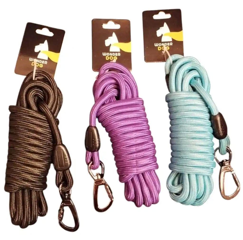 Esta correa de 5 metros para perros es perfecta para paseos y entrenamiento, brindando libertad de movimiento y control. Fabricada en nylon resistente, es ideal para soportar jalones fuertes, manteniendo la seguridad de tu mascota. Incluye un gancho metálico de alta calidad para un enganche rápido y seguro. Disponible en tres colores: azul, morado y negro, combina durabilidad con estilo. Características: Longitud: 5 metros Material: nylon de alta resistencia Colores: azul, morado y negro (Colores según disponibilidad) Gancho de metal resistente