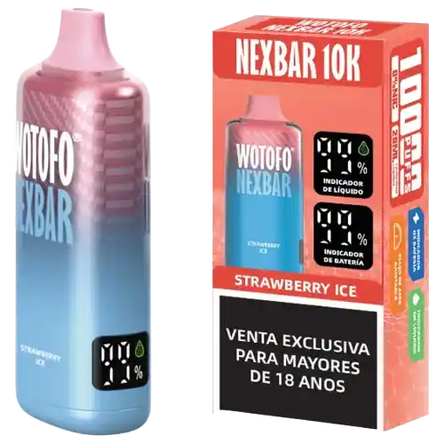 "Wotofo Nexbar 10000 Puffs Strawberry Ice, te ofrece una combinación perfecta de frutilla dulce y jugosa, junto con un refrescante toque de hielo mentolado. Cada inhalación proporciona una experiencia de vapeo afrutada y fresca, ideal para los amantes de los sabores frutales con un giro refrescante. Este dispositivo desechable está diseñado para ofrecerte hasta 10,000 puffs, lo que te asegura una experiencia de vapeo prolongada sin necesidad de recargar ni reemplazar el equipo durante un largo período de tiempo."