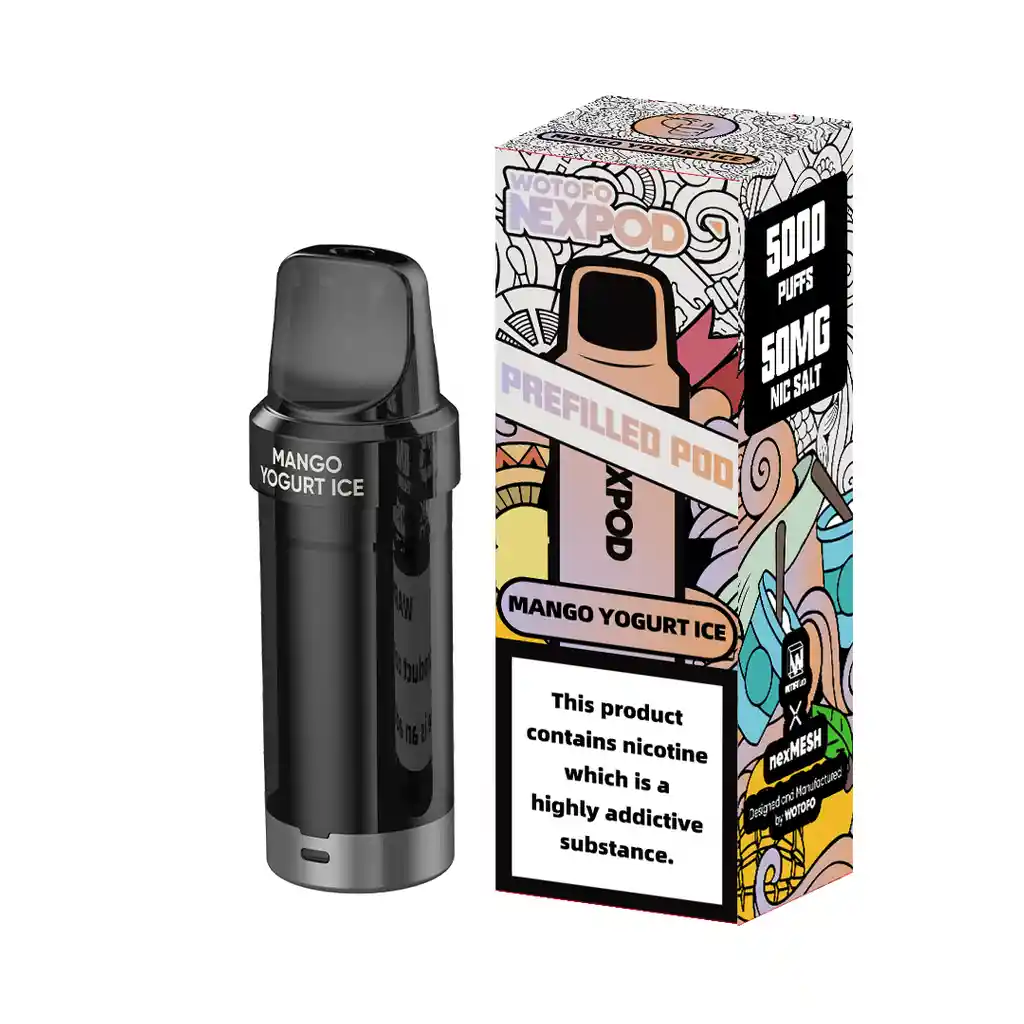 Sabor: Yogourt de Mango POD pre-cargado compatible con sistemas NexPod. Capacidad 10 ml equivalente a 5000 puffs. Potencia 4,5% Este producto requiere de una bateria Wotofo NexPod