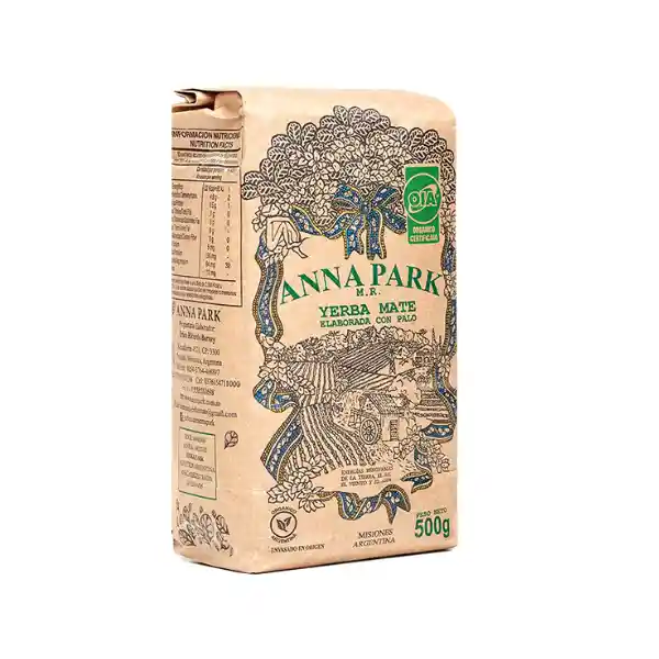 Anna Park siempre fue selecta y limitada: el proceso de elaboración se prolonga por tres años y la cosecha se realiza cada dos años. Así, respetamos el tiempo de la planta, la que sigue su proceso biológico natural y nos brinda sus extraordinarias hojas, siempre con la misma calidad y belleza. El secado de la yerba se realiza lentamente, en Barbacuá de cinta, sin humo, con sistemas de combustión de alto rendimiento y con intercambiadores de aire. Los procesos de oreado y estacionamiento son características que nos distinguen ya que no son viables económicamente para las grandes empresas pero sí para nosotros que privilegiamos el suelo y su calma. Origen: Argentina