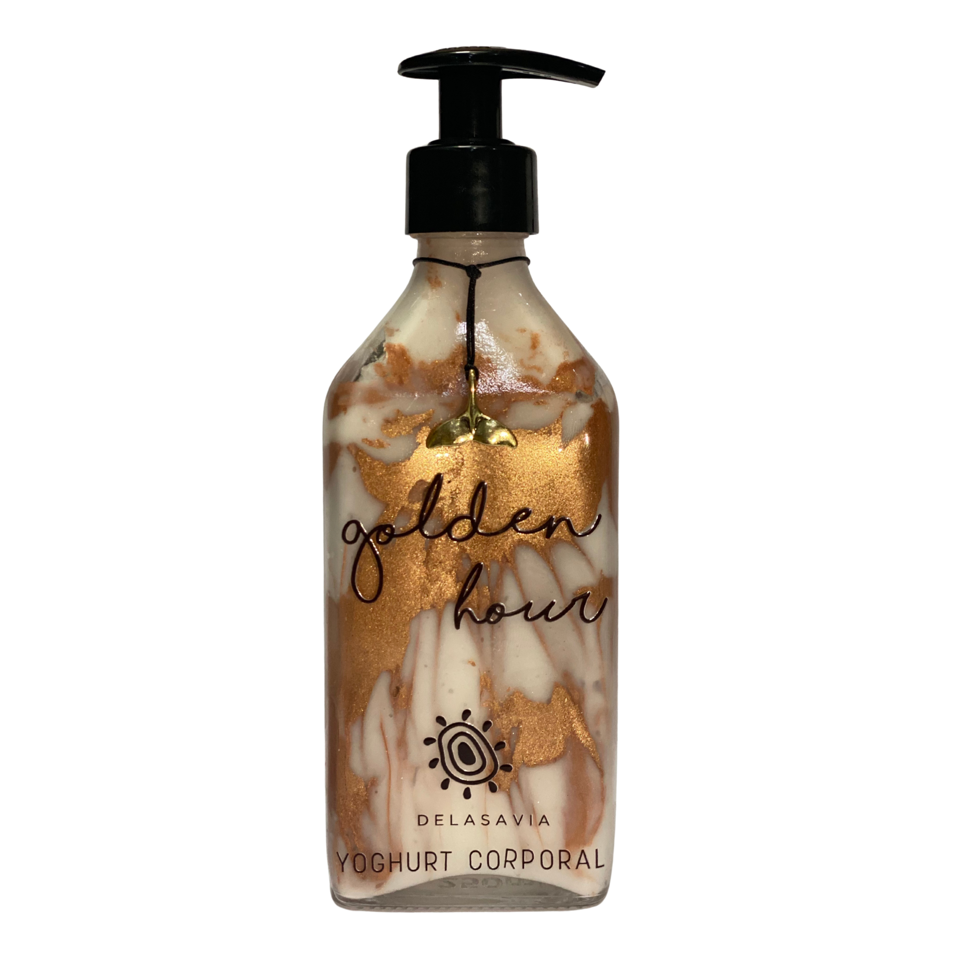 🤎 DEEP GOLDEN MOOD 🤎 Piel hidratada, luminosa y con destellos dorados. 🤎 Textura fresca, liviana, suave y de rápida absorción.. 🤎 Con Aloe Vera y Aceite de Argán para una piel suave y nutrida 🤎 Fragancia SUMMER IS CALLING: el aroma del verano que se queda contigo. ♻️ Bolsita by delaSavia para proteger tu crema. Colita de ballena dorada. ✨ NUEVO PRODUCTO ✨EFECTO DEEP GOLDEN GLOW YOGHURT CORPORAL GOLDEN HOUR CON BRILLOS DORADOS BRONZE. ✔️Intensifica el dorado natural del bronceado. Ideal para después del sol o para mantener tu piel radiante y fresca.Su textura tipo yoghurt corporal se funde al contacto, entregando una sensación fresca, liviana y profundamente hidratante. Sin colorantes / Sin parabenos / Sin aceites minerales.Fórmula vegana y cruelty free 💛 250 ml. BENEFICIOS ✔️ Aloe Vera: calma, refresca y repara la piel después del sol.✔️ Aceite de Argán: rico en antioxidantes y vitamina E, nutre y mejora la elasticidad.✔️ Brillos dorados: iluminan tu piel con reflejos sutiles, perfectos para cualquier ocasión.✔️ Textura ligera: se absorbe rápido, sin dejar sensación grasa. ✔️ El aloe vera alivia, refresca y mantiene tu piel húmeda y fresca. AROMA SUMMER IS CALLING — una mezcla irresistible de flores de la Polinesia, gardenias y toques de vainilla.Se combinan con leche de coco batida, pulpa de mango y piña para envolver tu piel en el perfume del verano eterno. USO Aplica sobre la piel limpia y seca, masajeando suavemente hasta su completa absorción.Ideal después del baño, después de la playa o antes de salir para darle a tu piel ese glow dorado irresistible. ✨ Recomendado para uso diario. INGREDIENTES Ingredientes activos: loe Vera, Aceite de Argán, Brillos , Fragancia Summer is Calling, Vitamina E. SENSACIÓN GOLDEN HOUR Todos los colores del atardecer en tu piel: hidratada, suave y con un brillo dorado que refleja el verano, incluso en invierno.Tu momento Golden Hour… cada día