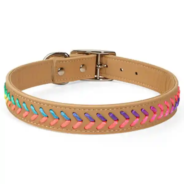 Youly Collar Cuero Sintético Tejido Multicolor Hebilla Café CH