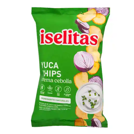 Ideal para cualquier ocasión de consumo, con delicioso sabor a crema y cebolla. Iselitas Yuca Chips no contiene gluten, por lo que puede ser consumido por personas celíacas e intolerantes al gluten.