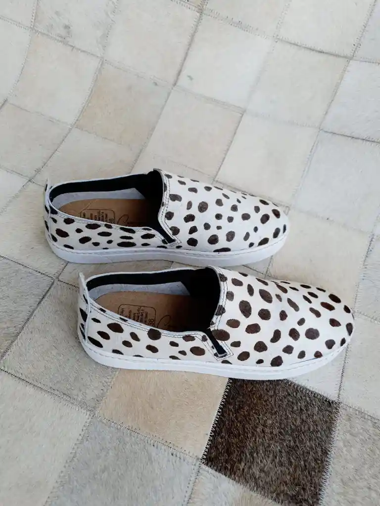 Zapatilla cuero vaca con animal print. Tipo alpargata. Super cómoda. Largo del pie: 22,7 a 23,3 cm www.corazapatos.cl