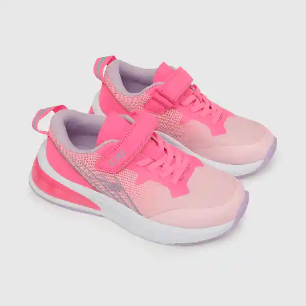 Par. De Niña Deportiva Fucsia. Fabricada Con Materiales de Calidad Especialmente Elegidos Para Mantener la Temperatura Adecuada Del Pie. -Capellada 30% Sintético 70% Textil. -Forro 100% Textil. -Plantilla 100% Textil Antibacterial Con Medidor de Talla Que Otorga Control Para un Calce Perfecto. -Suela 10% Tr 10% Tpu 80% Phylon Liviana y Flexible Con Perfecta Adherencia a Toda Clase de Superficies. -Tipo de Cierre: Velcro-Cordón Elástico -Altura Caña: Baja.