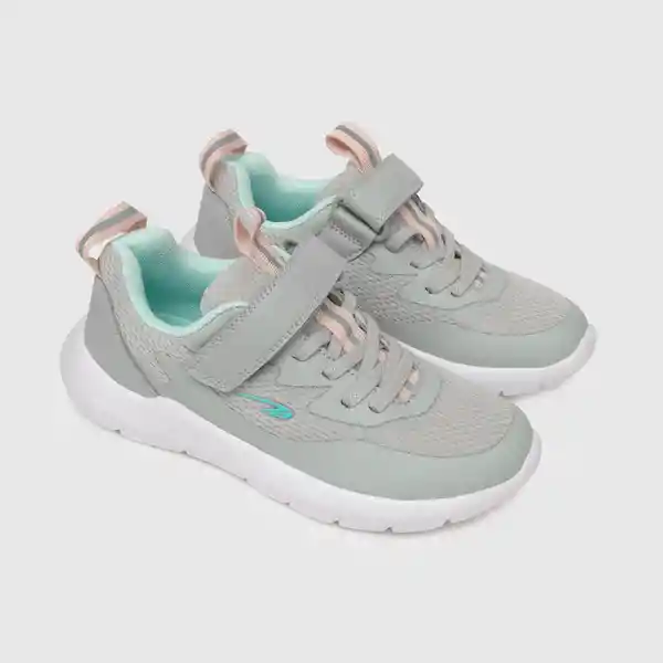 Par. De Niña Deportiva Gris. Fabricada Con Materiales de Calidad Especialmente Elegidos Para Mantener la Temperatura Adecuada Del Pie. -Capellada 20% Sintético 80% Textil. -Forro 100% Textil. -Plantilla 100% Textil Antibacterial Con Medidor de Talla Que Otorga Control Para un Calce Perfecto. -Suela 100% Phylon Liviana y Flexible. -Tipo de Cierre: Velcro-Cordón Elástico -Altura Caña: Baja.