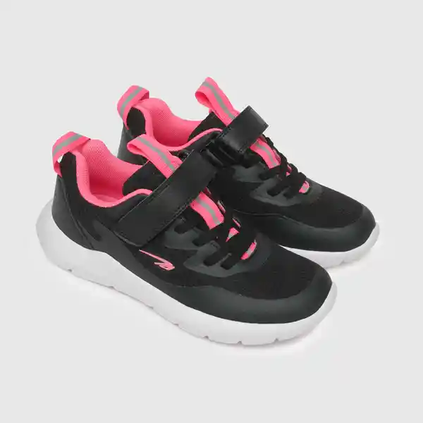Par. De Niña Deportiva Negra. Fabricada Con Materiales de Calidad Especialmente Elegidos Para Mantener la Temperatura Adecuada Del Pie. -Capellada 20% Sintético 80% Textil. -Forro 100% Textil. -Plantilla 100% Textil Antibacterial Con Medidor de Talla Que Otorga Control Para un Calce Perfecto. -Suela 100% Phylon Liviana y Flexible. -Tipo de Cierre: Velcro-Cordón Elástico -Altura Caña: Baja.