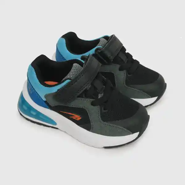 Par. De Niño Deportiva Negra. Fabricada Con Materiales de Calidad Especialmente Elegidos Para Mantener la Temperatura Adecuada Del Pie. -Capellada 40% Sintético 60% Textil. -Forro 100% Textil. -Plantilla 100% Textil Antibacterial Con Medidor de Talla Que Otorga Control Para un Calce Perfecto. -Suela 10% Tr 10% Tpu 80% Phylon Liviana y Flexible Con Perfecta Adherencia a Toda Clase de Superficies. -Tipo de Cierre: Velcro-Cordón Elástico -Altura Caña: Baja.