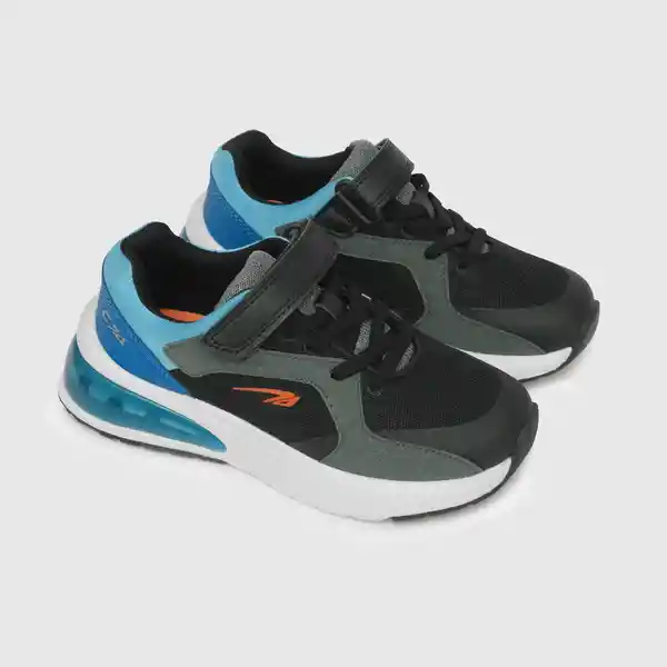 Par. De Niño Deportiva Negra. Fabricada Con Materiales de Calidad Especialmente Elegidos Para Mantener la Temperatura Adecuada Del Pie. -Capellada 40% Sintético 60% Textil. -Forro 100% Textil. -Plantilla 100% Textil Antibacterial Con Medidor de Talla Que Otorga Control Para un Calce Perfecto. -Suela 10% Tr 10% Tpu 80% Phylon Liviana y Flexible Con Perfecta Adherencia a Toda Clase de Superficies. -Tipo de Cierre: Velcro-Cordón Elástico -Altura Caña: Baja.