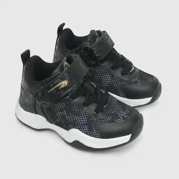 Par. De Niño Deportiva Negra. Fabricada Con Materiales de Calidad Especialmente Elegidos Para Mantener la Temperatura Adecuada Del Pie. -Capellada 40% Sintético 60% Textil. -Forro 100% Textil. -Plantilla 100% Textil Antibacterial Con Medidor de Talla Que Otorga Control Para un Calce Perfecto. -Suela 100% Tr Con Perfecta Adherencia a Toda Clase de Superficies. -Tipo de Cierre: Velcro-Cordón Elástico -Altura Caña: Baja.