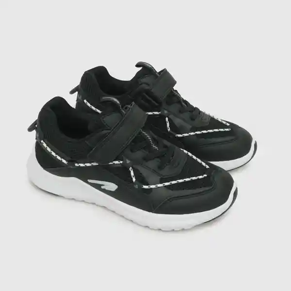 Par. De Niño Deportiva Reciclada Negra. Fabricada Con Materiales de Calidad Especialmente Elegidos Para Mantener la Temperatura Adecuada Del Pie. -Capellada 40% Sintético 60% Textil. -Forro 100% Textil. -Plantilla 100% Textil Antibacterial Con Medidor de Talla Que Otorga Control Para un Calce Perfecto. -Suela 10% Tr 10% Tpu 80% Phylon Liviana y Flexible Con Perfecta Adherencia a Toda Clase de Superficies. -Tipo de Cierre: Velcro-Cordón Elástico -Altura Caña: Baja.