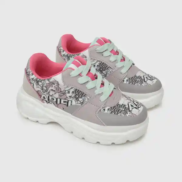 Par. De Niña Disney Ariel Celeste. Fabricada Con Materiales de Calidad Especialmente Elegidos Para Mantener la Temperatura Adecuada Del Pie. -Capellada 40% Sintético 60% Textil. -Forro 100% Textil. -Plantilla 100% Textil Antibacterial Con Medidor de Talla Que Otorga Control Para un Calce Perfecto. -Suela 100% Phylon Liviana y Flexible. -Tipo de Cierre: Cordón -Altura Caña: Baja.