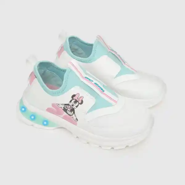 Par. De Niña Disney Minnie Blanca. Fabricada Con Materiales de Calidad Especialmente Elegidos Para Mantener la Temperatura Adecuada Del Pie. -Capellada 40% Sintético 60% Textil. -Forro 100% Textil. -Plantilla 100% Textil Antibacterial Con Medidor de Talla Que Otorga Control Para un Calce Perfecto. -Suela 15% Tr 85% Phylon Liviana y Flexible Con Perfecta Adherencia a Toda Clase de Superficies. -Tipo de Cierre: Ninguno -Altura Caña: Baja.