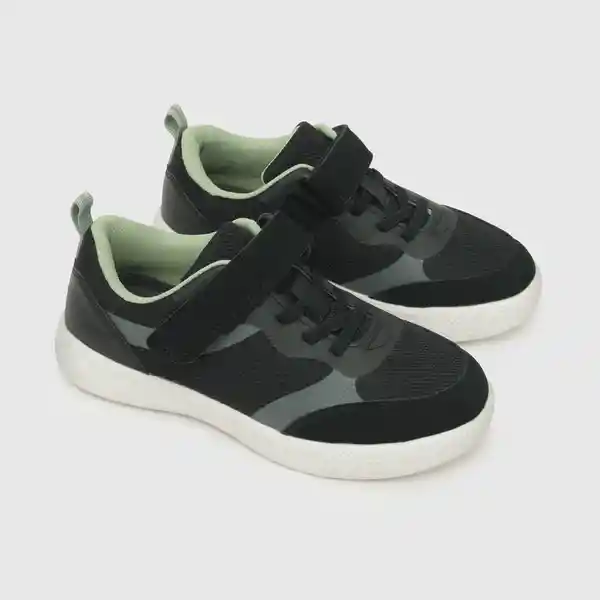 Par. De Niño Urbana Negra. Fabricada Con Materiales de Calidad Especialmente Elegidos Para Mantener la Temperatura Adecuada Del Pie. -Capellada 30% Sintético 70% Textil. -Forro 100% Textil. -Plantilla 100% Textil Antibacterial Con Medidor de Talla Que Otorga Control Para un Calce Perfecto. -Suela 100% Phylon Liviana y Flexible. -Tipo de Cierre: Velcro-Cordón Elástico -Altura Caña: Baja.