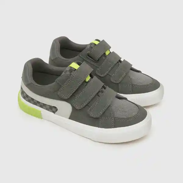 Par. De Niño Urbana Estampada Gris. Fabricada Con Materiales de Calidad Especialmente Elegidos Para Mantener la Temperatura Adecuada Del Pie. -Capellada 60% Sintético 40% Textil. -Forro 100% Textil. -Plantilla 100% Textil Antibacterial Con Medidor de Talla Que Otorga Control Para un Calce Perfecto. -Suela 100% Goma Con Buen Agarre. -Tipo de Cierre: Velcro -Altura Caña: Baja.