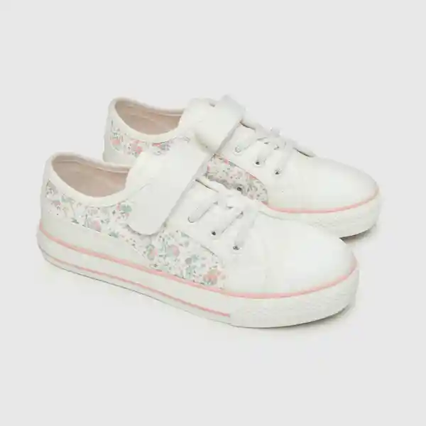 Par. De Niña Urbana Estampada Flores Blanca. Fabricada Con Materiales de Calidad Especialmente Elegidos Para Mantener la Temperatura Adecuada Del Pie. -Capellada 100% Textil. -Forro 100% Textil. -Plantilla 100% Textil Antibacterial Con Medidor de Talla Que Otorga Control Para un Calce Perfecto. -Suela 100% Textil Suave y Cómoda. -Tipo de Cierre: Velcro-Cordón Elástico -Altura Caña: Baja.