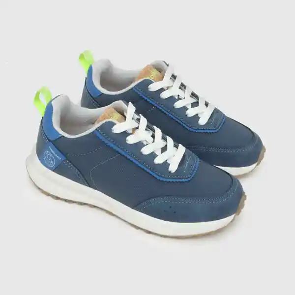 Par. De Niño Urbana Reciclada Azul. Fabricada Con Materiales de Calidad Especialmente Elegidos Para Mantener la Temperatura Adecuada Del Pie. -Capellada 45% Sintético 55% Textil. -Forro 100% Textil. -Plantilla 100% Sintético Antibacterial Con Medidor de Talla Que Otorga Control Para un Calce Perfecto. -Suela 40% Tr 60% Phylon Liviana y Flexible. -Tipo de Cierre: Cordón -Altura Caña: Baja.