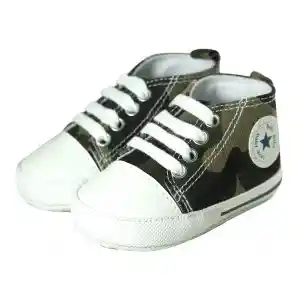 Zapatos para bebés. Cómodas de usar, de material lavable. Estampado Militar. Con cordones. Presentación en Caja.