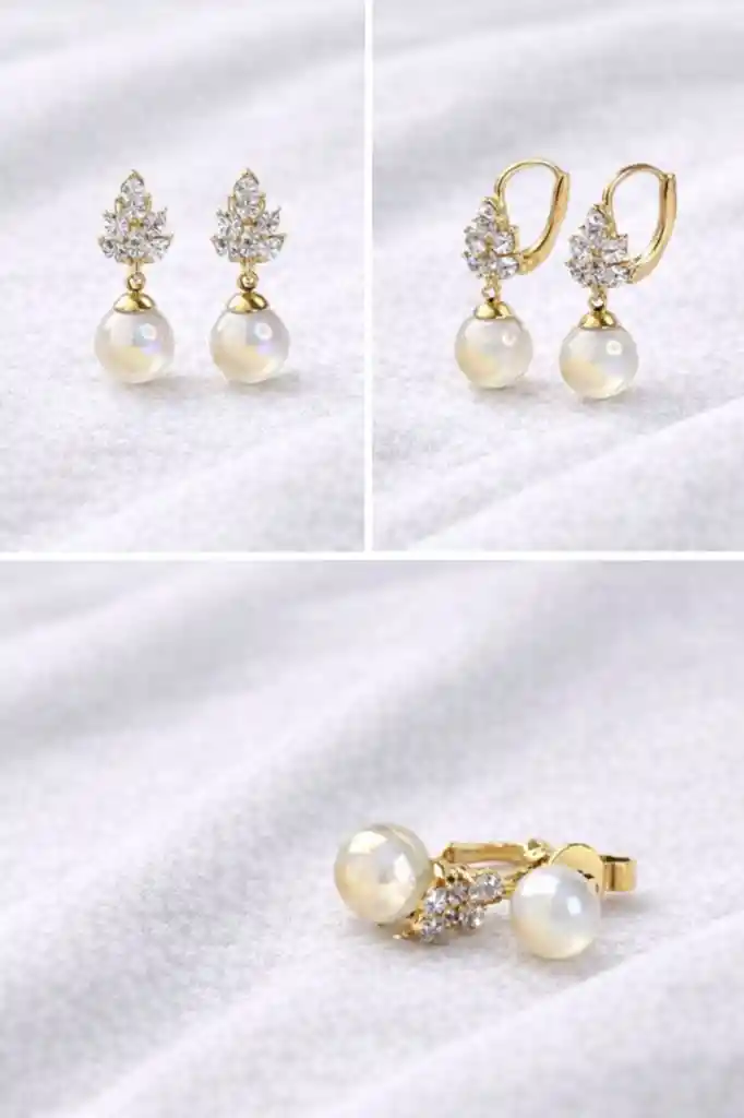 Hermosos zarcillos con cristales y perla lunar con broche de joyería laminado en oro de 14k