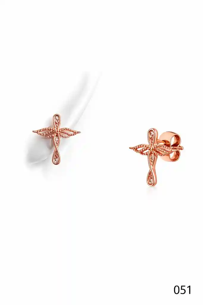 Zarcillos laminados en oro color rose de 18k.