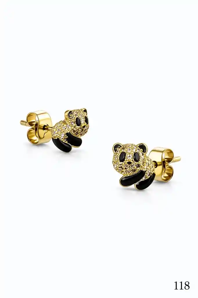 Zarcillos con diseño de panda en micro circones laminado en oro de 18k.