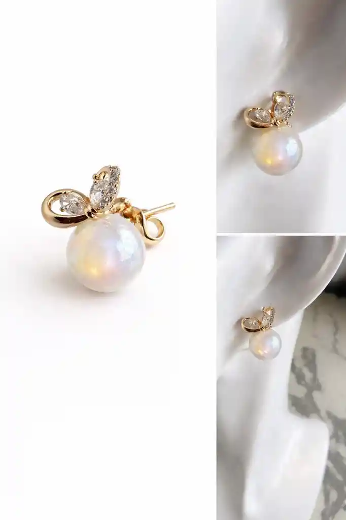 Zarcillos con perla y micro circones laminado en oro de 14k.