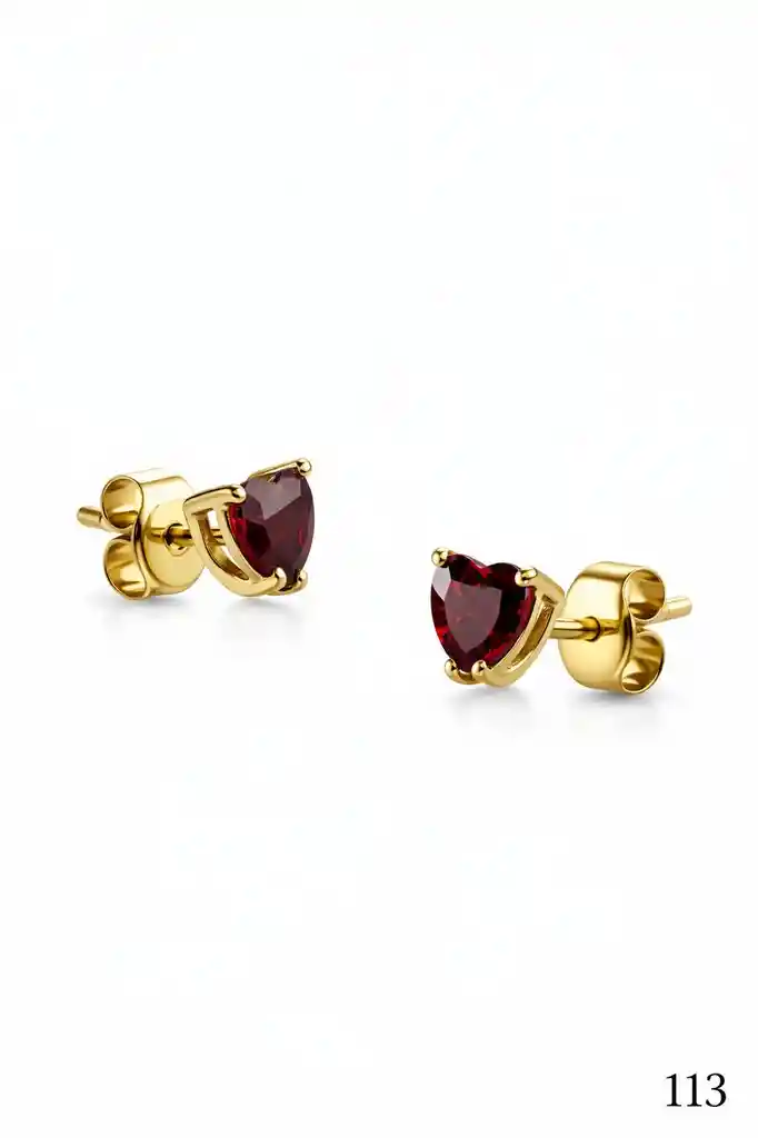 Zarcillos punto de luz en forma de corazón de cristal color burdeo laminado en oro de 18k.