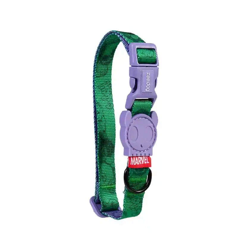 ZEE DOG - COLLAR MARVEL HULK PERROS SMALL (EDICION ESPECIAL) CUELLO 31-43 CM El collar para perros Hulk es parte de la colección limitada Marvel x Zee.Dog. Este collar para perros totalmente ajustable es súper suave para el pelaje y está hecho de poliéster duradero. La hebilla es resistente y el collar tiene una anilla en D de acero inoxidable para sujetar cualquier correa. Lavable con detergente neutro.