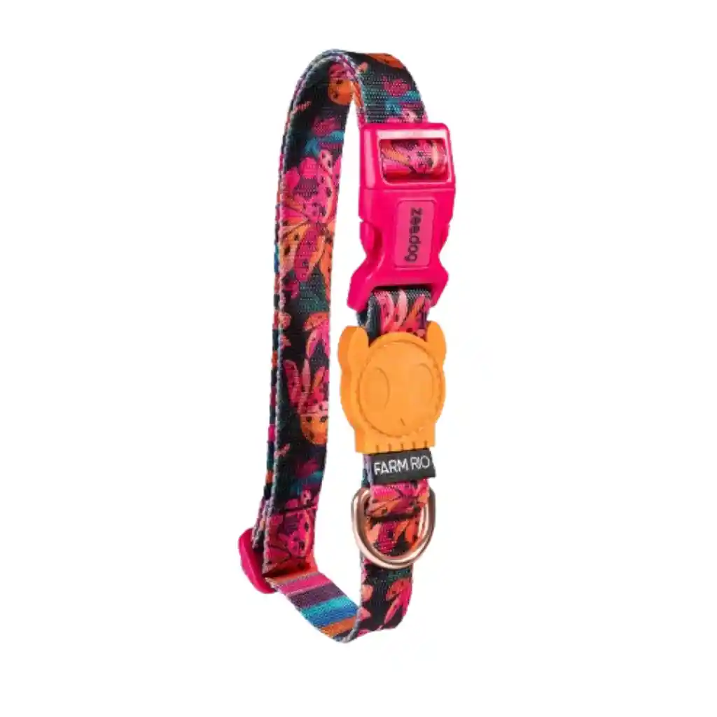 El collar Selva es un collar para perros totalmente ajustable de la colección de edición limitada FARM Rio X Zee.Dog. Hecho de poliéster duradero pero ultra suave, es suave con el pelaje y ofrece un uso duradero. Su textura suave garantiza la comodidad durante todo el día, ya sea que su perro salga a caminar o descanse en casa. La hebilla de liberación lateral reforzada tiene un mecanismo de bloqueo doble para mayor seguridad. Totalmente ajustable para un ajuste perfecto, este collar está diseñado tanto para estilo como para función. Detalles: Hecho de poliéster suave pero duradero para un collar de perro cómodo que dura Collar para perros fácil de limpiar: diseñado para el uso diario Collar de perro totalmente ajustable para un ajuste personalizado Hebilla resistente con un sistema de bloqueo de 4 puntos para una experiencia segura de collar para perros Anillo en D fuerte para una fijación segura de la correa. Dimensiones XS Anchura 1 cm. Circunferencia 23 – 33 cm.