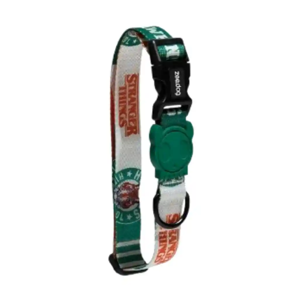 El collar Stranger Things para perro de la marca Zee.Dog, suave, resistente y cómodo. Ideal para paseos diarios. Características destacadas: Fabricado en poliéster suave y duradero Hebilla con sistema de bloqueo de 4 puntos Totalmente ajustable para un ajuste perfecto. Es un producto con licencia oficial, parte de una colección de edición limitada basada en la popular serie de Netflix. Talla M Ancho: 2 cm Circunferencia: 37-53 cm
