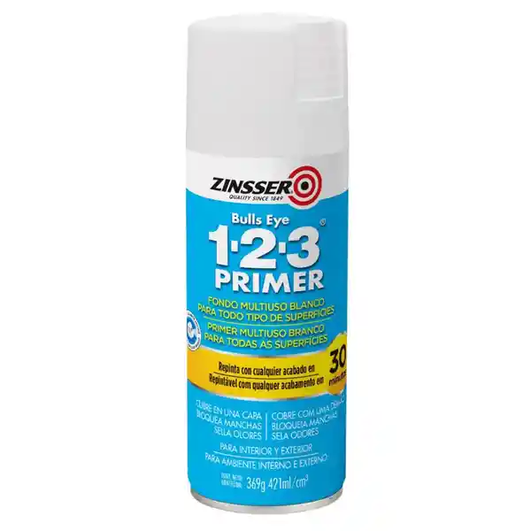 Zinsser 1-2-3 es un Imprimante Sellador en Aerosol el Cual Está Diseñado Para Promover la Adherencia en Superficies Poco Porosas Como: Azulejos Ceramico Esmaltes Brillantes Etc. Sella y Uniforma Absorción en la Mayoría de Las Superficies Porosas Como: Madera Madera Prensada Yeso y Concreto Tanto en el Interior Como en el Exterior. Posee un Excelente Poder Cubritivo lo Cual lo Hace Ideal Para Ocultar Fácilmente Colores Intensos su Fórmula Brinda un Secado Rápido y Bajo Olor. Diseñado Para Superficies Interiores y Exteriores. Se Adhiere a Las Superficies Brillantes Sin Lijado Previo. Inhibidor Del Óxido - Puede Utilizarse Para Imprimar Metales Ferrosos. Secado Rápido - Puede Aplicarse Una Capa Nueva en Menos de Una Hora. Se Adhiere a Todas Las Superficies y se Lija Fácilmente.