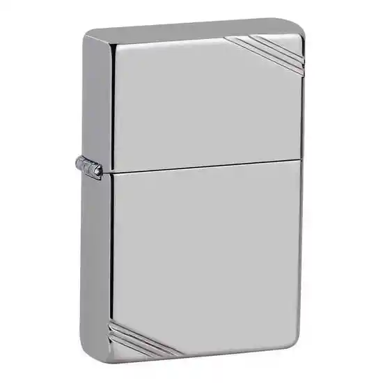 Encendedor Zippo Original en Metal Plateado Cromado y Fuerte Pulido Estilo Vintage Con Cortes en Las Esquinas. Tamaño de Encendedor Estandar y Mechero Con Diseño Tipo Chimenea a Prueba de Viento. Para un Máximo Rendimiento Utilízalo Con Los Suministros Zippo Genuinos: Bencina Mecha y Piedra. El Encendedor Viene Sin Llenar. Utilice el Líquido Combustible de Encendedor Marca Zippo 57 x 38 cm