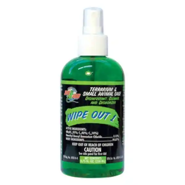De 0.29 Kg. El Desinfectante Wipe Out 1 de Zoo Med es Fácil de Usar. Este Limpiador y Desinfectante Arrasa Con un Amplio Espectro de Bacterias Incluyendo Salmonella en Terrarios y Pequeñas Hábitats de Animales. Su Uso Regular Puede Reducir la Propagación de Las Infecciones Bacterianas en Sus Animales. Beneficios: Hecho en Eua. El Desinfectante Limpiador y Desodorante Elimina un Amplio Espectro de Bacterias Incluida la Salmonela.