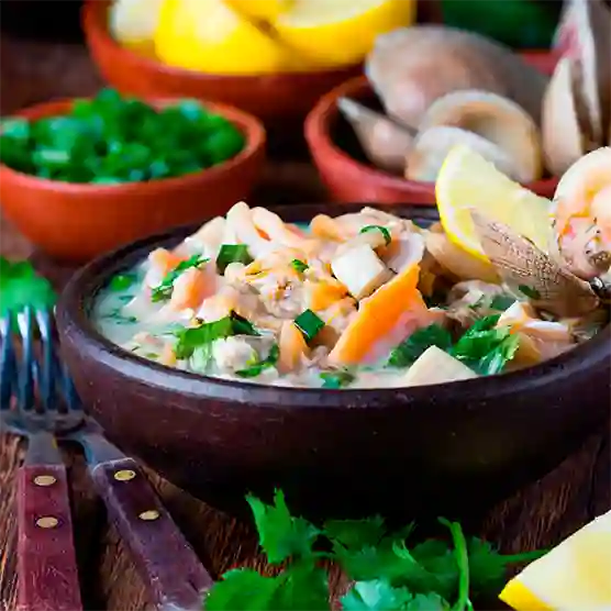 Mariscal de filete de congrio, pulpo, camarón, ostiones, pinzas de jaiba, choro maltón, calamar y tomate