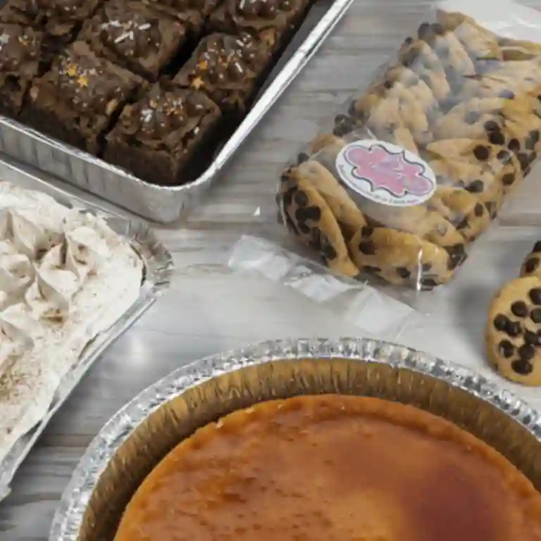 Delicioso brownie con nueces junto a 8 galletas con chispas de chocolate.