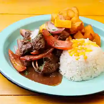 Fideos salteados con lomo de res, pollo, camarón y verduras con toque de salsa de ostras y sillao.