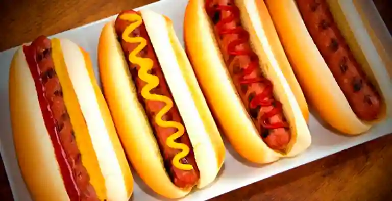 Pan de hot dog con vienesa pequeña, tomate, palta, salsa americana y chucrut.