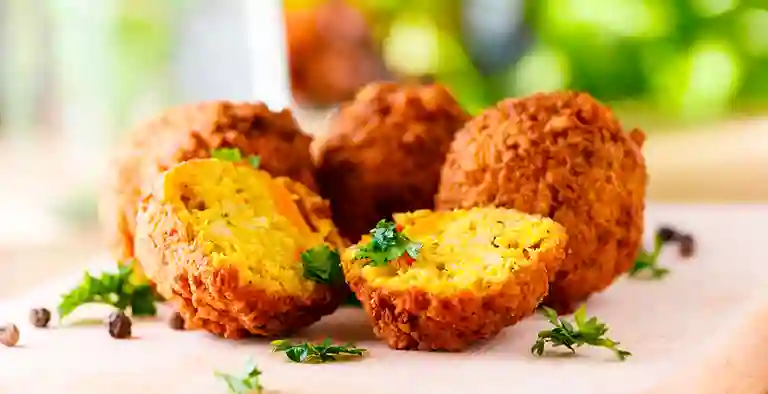 Albondigas, queso rayado, salsa napolitana, papas king.