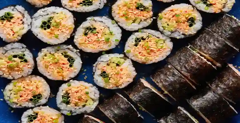 10 Luxor roll (pollo, queso crema, pimentón rojo y cebollín, envuelto en sésamo negro y coronado con cangrejo crujiente acevichado y roseado con togarashi), 10 luxor furay (roll apanado relleno de pollo, queso crema, pimentón rojo y cebollín, coronado con ensalada de papas dinamita y rociado con lluvia de ciboulette), 10 oribu avocado roll (aceituna, cebollín y queso crema, envuelto en palta y cubierto con salsa de aceituna), 10 kani furay (roll apanado relleno de kanikama, queso crema y cebollín), 10 sake tempura (roll tempurizado relleno de salmón, queso crema y cebollín), 10 hosomaki kanikama (kanikama, arroz y envuelto en nori) y 10 hosomaki camote (camote, arroz y envuelto en nori).