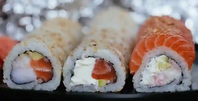 Rolls avocado sake 10 pz, acevichado roll 10 pz y furay oriental 10 pz.