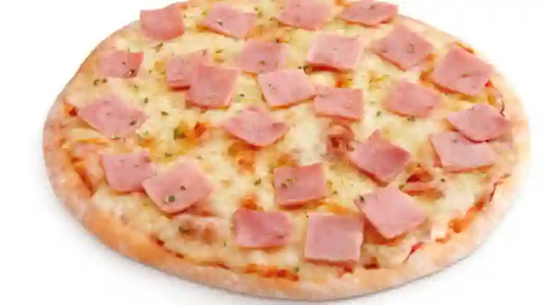 Pizza mediana 30 cm, salsa base, queso mozzarella, jamon.