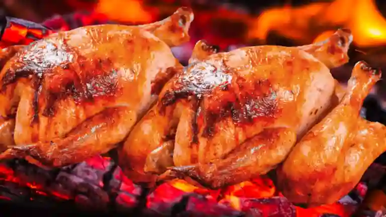 Exquisito pollo asado entero, con papas fritas medianas y 3 salsas más una bebida 1.5l.