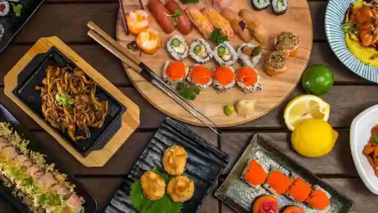10 Rolls con envuelto sesamo mix relleno de salmón, atún y palta, coronado con ceviche fresco nikkei (pescado marinado en limón, cebolla morada y toques de ají).