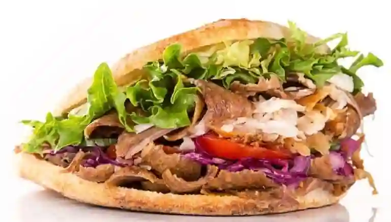 Carne vacuno marinado en 7 especias árabes, base de lechuga, cebolla morada, perejil, tomate y salsa a elección
