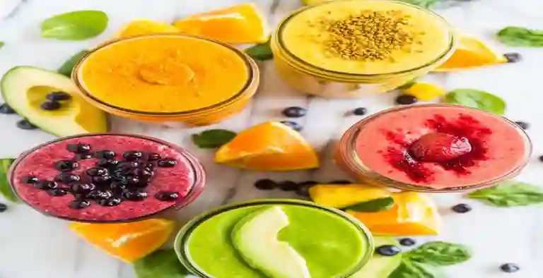 Batidos Saludables Preparadas con Frambuesas, Frutilla, Arandanos, Yogurt Griego y Leche Sin Lactosa Endulzado con Stevia. Mezclados en Una Licuadora.