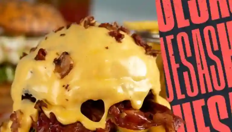 Burger doble carne de res, queso cheddar, tocno laminado, salsa de tocino y cebolla crispy