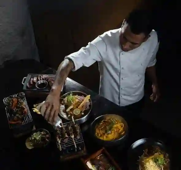 Arroz salteado con una selección de mariscos frescos, cocinado en salsa madre de la casa que realza sus sabores y aromas. Un plato intenso y lleno de sabor a mar, terminado con cilantro fresco y acompañado de limón.